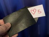 Endlich eine echte Way-out Lösung für Vorhersagen aller Art. Auf dem Tisch liegt ein kleiner schwarzer Umschlag mit einer Vorhersage. Wenn Sie nun ein Kunststück vorführen, das mehrere "Endings" beinhaltet, sind Sie hiermit bestens ausgerüstet. Der Umschlag gestattet vier verschiedene Vorhersagen, indem Sie lediglich die richtige Seite öffnen und einen Zuschauer hineinschauen lassen. Er sieht darin immer nur eine Karte, einen Zettel oder Geldschein etc., der gerade benötigt wird. Der Umschlag ist so gestaltet, dass er keinen Verdacht erregt und auch sehr flach ist. Ideales Requisit auch für eine gezwungene Wahl, die Möglichkeiten sind endlos! Der Umschlag ist nicht aus Papier, sondern aus robustem, langlebigem Material, das wie Papier aussieht. Sie erhalten das Trickset inklusive einer Online Instruktion.