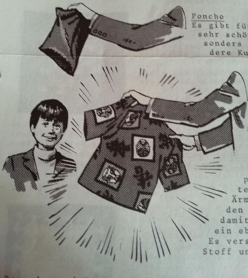 Einen Stoffbeutel (30x20 cm) zeigen Sie Ihren kleinen Zuschauern von aussen und innen schwarz und auch sicherlich mit dem Beginn einer Geschichte leer vor. Beim erneuten Umkrempeln verwandelt sich dieser Beutel plötzlich in einen Poncho mit Ärmeln und zwei grossen Taschen, den Sie Ihrem Assistenten anziehen, damit er neben Ihnen anschliessend ein ebenbürtiger Zaubermeister ist. Es versteht sich von selbst, dass Stoff und Muster farbenfroh sind / NEU.