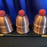 Sie kennen einen der grössten Klassiker. der Zauberkunst, das Becherspiel? Dieses Spiel mit den drei Bechern und den drei Bällchen? Mal erscheinen die Bälle hier, verschwinden dort, versammeln sich unter einem Becher, um dann, letztendlich, drei Zitronen oder auch TENNISBÄLLEN Platz zu machen. Klar Sie kennen es, haben es vielleicht auch schon probiert! Mit Joghurtbechern vielleicht? Oder Plastikbechern aus dem Zauberkasten? Doch, doch, das geht, sieht nur nicht so gut aus. Und es geht auch nicht so ganz gut, denn um das Becherspiel gut vorführen zu können brauchen Sie Becher, die gut in der Hand liegen, die griffig sind, die einen schönen Klang haben und denen dennoch ein Schlag nichts ausmacht. Sie brauchen eben ein professionelles Becherspiel. Und so eines biete ich Ihnen hier an: Drei wunderschön von Hand gefertigte Kupferbecher, Stück für Stück ganz sauber gedrückt, am Rand gefalzt und poliert. Jeder Becher ist ca. 9.5 cm hoch, die Öffnung (innen) ca. 7,7 cm. In der Mitte läuft ein ausgebördelter Falz, so dass die Becher auch dann noch schön aufeinander sitzen, wenn sich ein Ball auf dem unteren Becher befindet. Der Boden ist mittig vertieft, da kann das Bällchen nicht so leicht herunterfallen. Kurz und gut, dies ist das beste Becherspiel, das es z.Zt. auf dem europäischen Markt gibt. Qualität hat ihren Preis, der sich aber sehr schnell bezahlt macht.