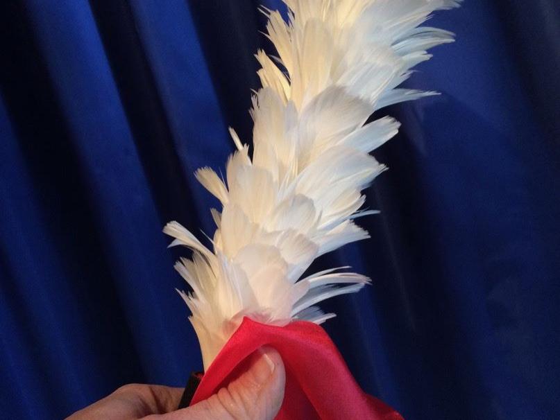 Kann man die Federbuschfärbung weiterentwickeln? Ja, und das NEUE SYSTEM ist genial! Als ich die Vorführung das erste Mal sah, war ich platt und hatte keine Erklärung dafür. Sie zeigen ein kleines Seidentuch (TÜCHERSPRUDEL), und plötzlich entfaltet es sich und es quellen immer neue Tücher hervor. Es sieht aus, als würde sich eine geschlossene Rosenblüte im Zeitlupentempo öffnen, und es erscheinen nacheinander bis zu 6 verschiedenfarbige Seidentücher im Format 30 x 30 cm. Jetzt nehmen Sie ein oranges Tuch vom TÜCHERSPRUDEL und streichen damit einmal über den türkisblauen Federbusch, der dann orange wird. Dann nehmen Sie ein violettes Tuch und streichen einmal über den gelben Federbusch, der dannn violett wird. Der dritte weisse Federbusch färbt sich anschliessend durch Darüberstreichen mit einem roten Seidentuch in einen roten Federbusch. Zum Schluss können Sie die drei Federbüsche wieder in einen türkisblauen, einen gelben und einen weissen zurückverwandeln! Sie erhalten ein qualitativ sehr hochwertiges Requisit made in Switzerland in TOP AUSFÜHRUNG! Die Vorführung ist extrem einfach und erfordert keine Fingerfertigkeit. Ein "Druck" aufs "Knöpfchen" und schon ist es passiert! Die Länge der Federbüsche beträgt 50 cm und der Durchmesser 10 cm. Inkl. TÜCHERSPRUDEL mit 6 Seidentüchern 30 x 30 cm und einer deutschen Gebrauchsanleitung.