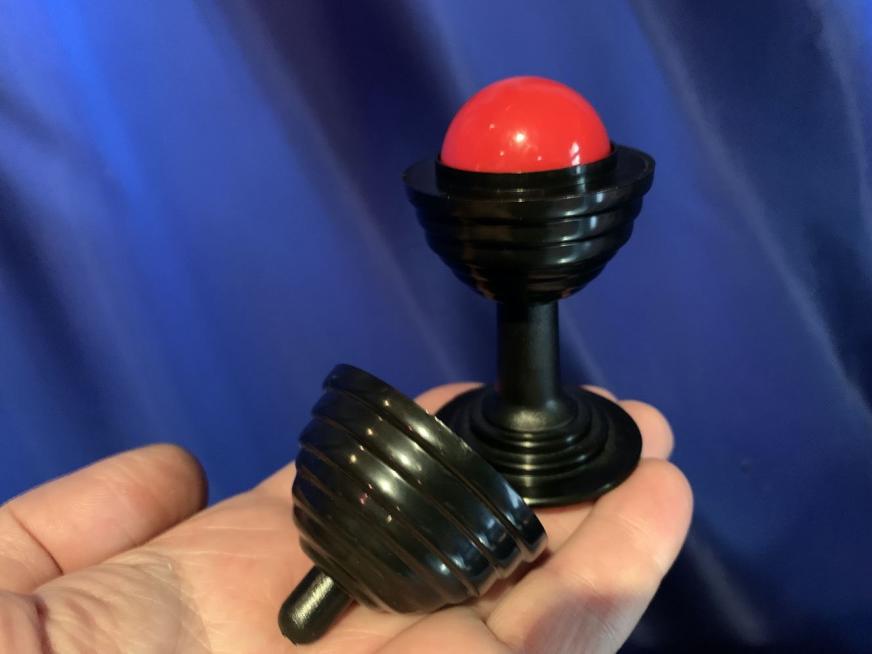 Äusserst beliebter Zaubertrick, besonders für Kinder und Anfänger geeignet. Sie stellen die KUGELDOSE auf den Tisch, öffnen sie und nehmen den roten Ball heraus, den Sie in Ihre Tasche stecken. Dann stülpen Sie kurz den Deckel auf die Dose, nehmen ihn wieder ab und siehe da: Der Ball ist wieder in der Vase erschienen!
