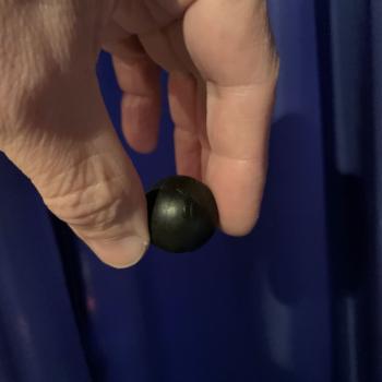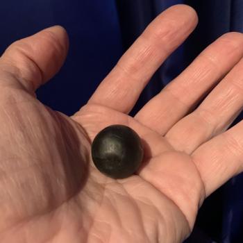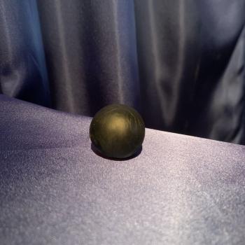 Sie zeigen einen schwarzen Gummiball mit einem Durchmesser von 2,5 cm und jedesmal, wenn Sie ihn auf den Boden fallen lassen, springt er "Pling!" in Ihre Hand zurück .
