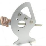 Diese Arm Guillotine können Sie leicht transportieren. Das "Arbeitsgerät" ist handgefertigt in Metalloptik. Bei den Ausmassen: Höhe ca. 38 cm. Breite (mit Messer) ca. 43 cm. Hier der der Effekt: Sie stecken durch das obere Loch und das untere Loch hintereinader eine kleine Karotte. Jedesmal wenn Sie das Messer herunterdrücken wird die Karotte zerteilt. Nun wird es Zeit einen Zuschauer zu sich zu bitten (na das hätten Sie dann mal vor dieser Demonstration machen sollen:-)). Wenn sich dann doch einer gefunden hat bitten Sie ihn die Hand durch das obere Loch zu stecken und freundlich zu winken. In das untere Loch stecken Sie fix die kleine Karotte (oder etwas ähnliches). Die Situation - in der Ihr Zuschauer steckt - können Sie nun natürlich köstlichst ausnutzen: Fragen Sie ihn wie es ihm geht - oder ob er Angst hat - ect. Zum Schluss drücken Sie das Messer herunter, welches den Arm des Zuschauers durchdringt und die darunter befindliche Karotte in zwei Teile zerteilt. Nun soll Ihr blassgewordener Zuschauer noch mal fröhlich winken damit Ihr Publikum sieht das Ihnen der Trick auch nicht in die "Hose" gegangen ist.
