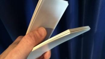 PAPIER ZU GELD ist ein Kunststück, das bei jedem Publikum sensationell ankommt. Sie zeigen 18 banknotengrosse weisse Papierstücke einzeln von beiden Seiten vor, fächern sie auf, schliessen den Fächer wieder und plötzlich halten Sie in der Hand lauter 100 US-Dollar Geldscheine, die Sie einzeln und von beiden Seiten zeigen können. Wenn Sie wollen, können Sie diese Banknoten ebenso leicht und einfach wieder in weisse Papierstücke zurückverwandeln. Beachten Sie: Das Kunststück kann jederzeit, auch umringt, gezeigt werden, ohne schwierige Griffe und ohne die Geldscheine in der Mitte zu falten. Jedes einzelne Papierstück und jede einzelne Banknote kann von beiden Seiten gezeigt werden.