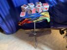 Sie sind nicht an Kartenwerte gebunden, sondern können eigene Abbildungen anbringen. Ideal also für Produktpräsentationen oder fürs Erscheinenlassen eines Firmenlogos. Sie erhalten den komplett zerlegbaren Tisch mit durchsichtiger runder Plexiglasplatte (Durchmesser 44 cm) sowie alles Zubehör. Der Tisch kann auch für andere Vorgänge benutzt werden. Lieferbar mit Kartenwert und Frucht auf den Würfeln.