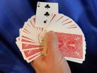 Sie zeigen 6 Würfel, die von allen Seiten mit verschiedenen Kartenwerten bedruckt sind. Richtig zusammengesetzt, können Sie daraus verschiedene Kartenbilder erstellen. Nachdem die Würfel von allen Seiten gezeigt worden sind, setzen Sie diese mit der Rückseite zum Publikum zusammen und treffen auf diese Weise eine Vorhersage. Aus einem Kartenspiel lassen Sie nun einen Zuschauer zwei Spielkarten wählen. Wird dann der Würfelstapel gedreht, liegen alle Würfel durcheinander und man kann keinen Kartenwert erkennen. Aber wozu ist man Zauberer?