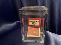 Eine Karte, die sich in einer durchsichtigen Acrylglas-Box befindet, entpuppt sich als die von einem Zuschauer unterschriebene. Die gefaltete Karte bleibt die ganze Zeit sichtbar. Sie wird dann aus der Box geschüttet und mit spitzen Fingern auseinandergefaltet es handelt sich tatsächlich um die unterschriebene Zuschauerkarte! Das ist CLARITY BOX. Sie können anstelle der Karte auch einen unterschriebenen Geldschein oder einen Vorhersagezettel verwenden ein echtes Universalgimmick!