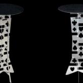 Der erste Eindruck ist der beste, heisst es! Hinterlassen Sie also bei Ihrem Publikum von Anfang an einen guten Eindruck. Wie gefällt Ihnen zum Beispiel folgender Effekt: Sie betreten mit einem Pizzakarton die Vorführfläche, öffnen den Karton und produzieren daraus einen 78 cm hohen Tisch. Die Platte ist rund und hat einen Durchmesser von 39 cm. Obwohl der Tisch klein und zusammenfaltbar ist, zeichnet ihn eine sehr hohe Standfestigkeit aus. Er ist aus Alu gearbeitet und sieht optisch hervorragend aus. Eine handwerklich so gute Arbeit kann leider nicht billig sein; dafür hat der Tisch aber eine gewisse Exklusivität. Zusammengelegt wirklich nur 39 x 1,5 cm! Ideal für den Tischzauberer. Sie können ihn von Tisch zu Tisch mitnehmen. Er ist klein und doch gross genug, z.B. für ein Becherspiel. Ideal auch für den Sprechzauberer oder als Ergänzung für die FLASCHEN-WANDERUNG! Inklusive Transporttasche.