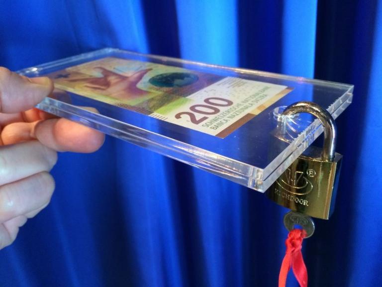 In einer Hülle aus Plexiglas befindet sich eine Banknote von hohem Wert. Sie verschliessen die Hülle mit einem grossen Vorhängeschloss, das Sie durch die Bohrung in der Hülle führen, und ein Zuschauer wird gebeten, alles zu prüfen. Der Schlüssel zum Schloss wird nun zusammen mit fünf fremden Schlüsseln in ein Glas geworfen. Nur EINER der sechs Schlüssel passt zum Schloss. Jetzt beginnt ein spannendes Spiel: Derjenige Zuschauer, der den richtigen Schlüssel wählt und damit das Schloss aufsperrt, darf den Geldschein behalten. Nun werden fünf Zuschauer gebeten, je einen Schlüssel zu wählen. Ein einziger Schlüssel verbleibt im Glas; es ist der Schlüssel des Zauberers. Nach Wunsch können die Schlüssel auch noch ausgetauscht werden. Nun versucht ein Zuschauer nach dem anderen, das Schloss aufzusperren, aber vergeblich! Sie als Vorführender gewinnen dieses rätselhafte Spiel IMMER, mit 100%iger Sicherheit! Bitte beachten Sie: Es werden nur die sechs Schlüssel verwendet und das Geheimnis kann von den Zuschauern nicht entdeckt werden! Sie fassen das Schloss während der ganzen Prozedur nicht an, und es wird nichts hinzugefügt oder beiseite geschafft! Es handelt sich um eine sehr schöne, exklusive Ausführung, die Sie problemlos auf jeder Party vorführen können! Geliefert wird GEWINNSPIEL mit: Plexiglashülle, Schloss, Schlüssel und einer ausführlichen Anleitung.