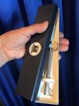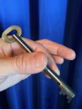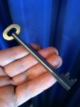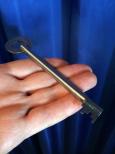 Sie zeigen einen grossen, alten Kellerschlüssel, an dem nichts Aussergewöhnliches festzustellen ist, und legen ihn auf Ihre ausgestreckte flache Hand. Sie bitten nun Ihre Zuschauer, sich auf den Schlüssel zu konzentrieren. Auf einmal kommt geheimnisvolles Leben in den Schlüssel und er dreht sich auf der regungslos gehaltenen Hand im Schneckentempo um. Sie wiederholen den Vorgang auf Ihrem ausgestreckten Zeigefinger und dann sogar auf der ausgestreckten Hand eines Zuschauers. Auch dort dreht sich der Schlüssel wie von Geisterhand ganz langsam um. Nach diesem Wunder hält der Zauberer den Schlüssel mit einer Hand und konzentriert sich auf den Schlüsselbart. Obwohl es eigentlich nicht sein kann, verschiebt sich im Zeitlupentempo der Schlüsselbart um eine Vierteldrehung weiter, so dass dieser jetzt eine völlig andere Position hat!
