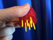 Ein interessanter Effekt mit einer Münze: Sie zeigen eine kleine runde Plastikdose und öffnen den Deckel. Dann legen Sie einen Fünfliber in die Dose und setzen den Deckel wieder auf. Was nun folgt widerspricht sämtlichen Grundgesetzen der Natur: Sie nehmen mehrere Plastiknägel und durchbohren damit die in der Dose befindliche Münze. Die unteren Teile der Nägel erscheinen gut sichtbar am Boden der Dose. Die Münze muss also durchdrungen worden sein! Nun entfernen Sie die Nägel wieder und siehe da: die Münze ist unversehrt geblieben! Und das Schönste am Ganzen: am Schluss können Sie alles zum Untersuchen aus der Hand geben!