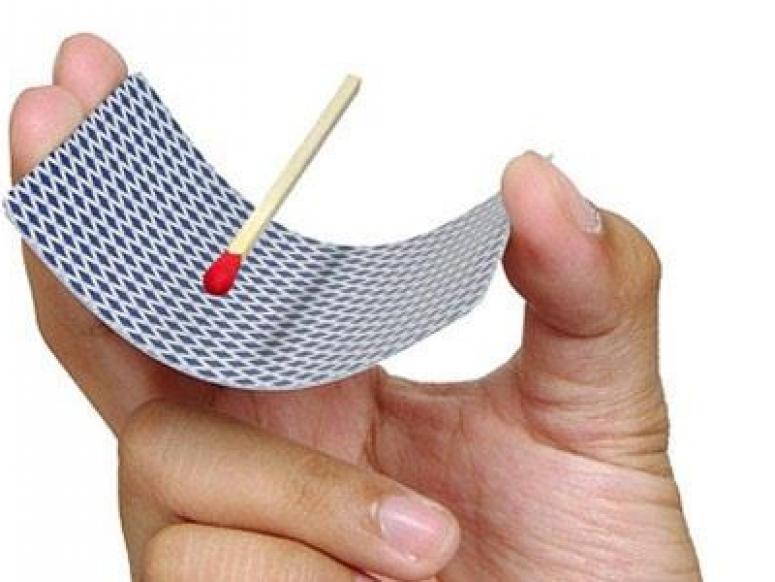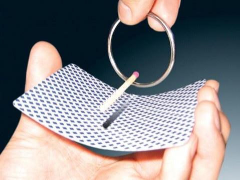 Legen Sie eine Spielkarte auf Ihre Handfläche und ein ausgeliehenes Zündholz obendrauf. Und nun passiert s: Langsam, ganz langsam hebt sich das Zündholz von der Spielkarte ab und schwebt höher und höher. Zum Beweis, dass sich nichts zwischen Zündholz und Spielkarte befindet, können Sie mit einer zweiten Karte darunter gehen. Lassen Sie dann das Zündholz wieder langsam und sicher landen, geben Sie es zurück und tun Sie so, als ob nichts gewesen wäre...