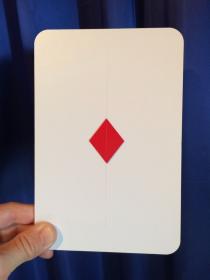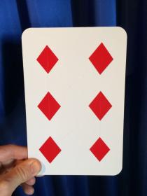 Sie zeigen eine Karo-As-Karte. Auf der Rückseite ist Karo-Vier zu sehen. Nun verwandelt sich durch einfaches Drehen der Karte Karo-As in Karo-Drei, und aus Karo-Vier wird Karo-Sechs. Die Zuschauer meinen den Trick durchschaut zu haben, denn bei jedem Drehen der Karte würden Sie offensichtlich mit der Hand einige Karos abdecken. Sie geben zu, dass Sie geschummelt haben, und erklären das Kunststück zum Schein. Aber plötzlich müssen die Zuschauer erkennen, dass sie immer noch nicht wissen, wie es funktioniert, denn die Riesenkarte verwandelt sich lustig weiter, ohne dass Sie irgendetwas verdecken. Dieser Trick ist ein Klassiker, und Sie werden damit immer Erfolg haben! Grösse der Karte: 13,5x20,5 cm.
