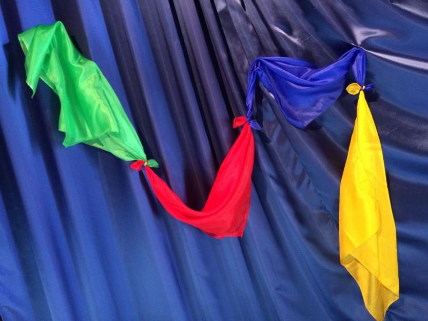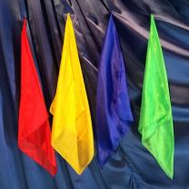 Hier erhalten Sie acht einzelne Seidentücher (Grösse 30 x 30 cm) je zwei in den Farben rot, gelb, grün und blau und ein vier Farben Blendotuch (rot, gelb, grün und blau) in der Grösse 60 x 60 cm.