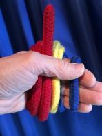 Sie zeigen drei verschiedenfarbige Seile in gelb, rot und blau und verknoten sie zu einem Seil. Geben Sie dann eine Prise aus unserem QUIETSCHENDEN SALZSTREUER dazu, und null Komma plötzlich sind die Knoten verschwunden und das Seil ist an einem Stück in den Farben gelb, rot und blau. Es kann sofort untersucht werden! Ein Superseiltrick, bei dem Sie keine Fingerfertigkeit brauchen. Wir liefern Ihnen die Seile in einer perfekten Baumwollausführung und mit einer deutschen Gebrauchsanleitung inkl. Vortrag. Wir empfehlen Ihnen, den QUIETSCHENDEN SALZSTREUER gleich mitzubestellen.