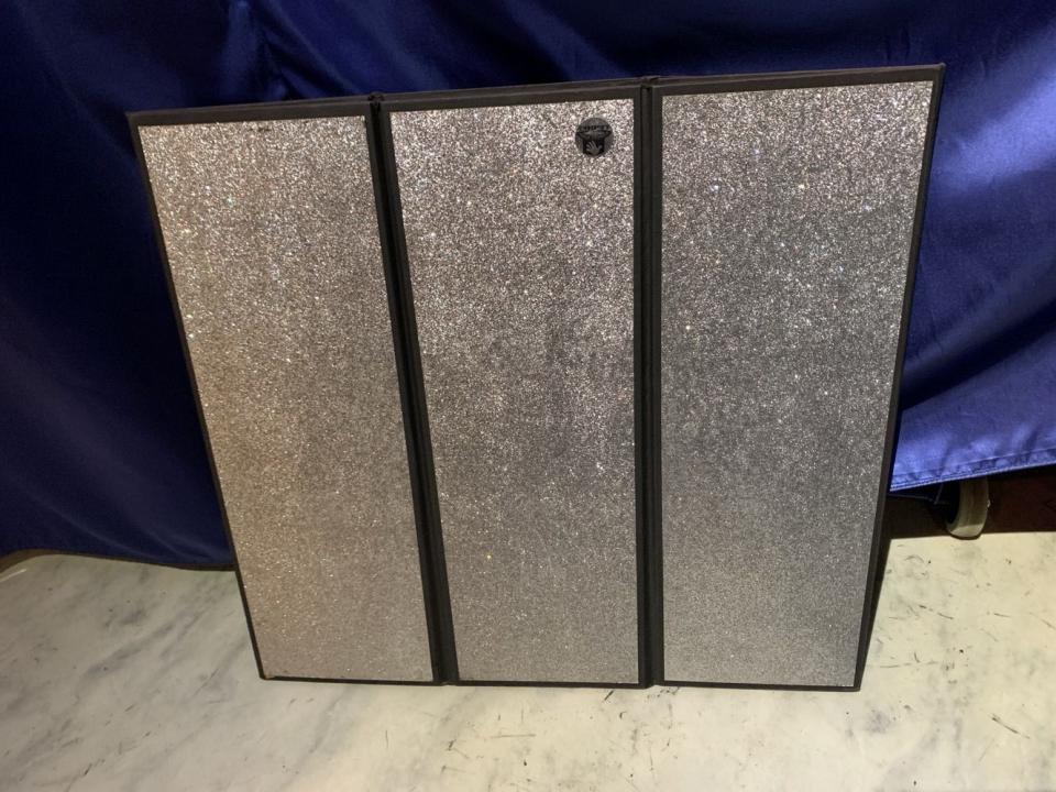 Die anspruchsvolle Ablage für den anspruchsvollen Magier. Erstklassige Buchbinderarbeit. Dekorativ mit Silberglimmer belegt. Flach zusammenlegbar, daher passt dieses wunderschöne Requisit in jeden Koffer.