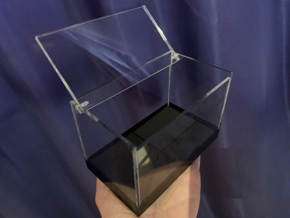Sie können auf eine sehr schnelle und saubere Art und Weise den Inhalt der CRYSTAL SWITCH BOX austauschen, wie z. B. Schlüssel, Zettel, Lose, Geldscheine, Münzen usw.