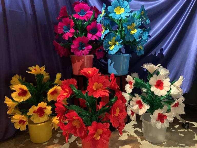 Dieser unmögliche Produktionsvorgang wird noch vier weitere Male wiederholt, sodass am Ende fünf Blumentöpfe voller Blumenbuketts erscheinen!
