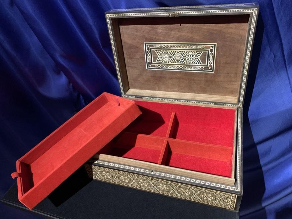 Sie erhalten die Schatulle samt Einsatz (natürlich ohne Requisiten).